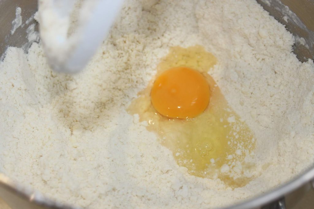 Ajoutez alors l’œuf puis mélangez de nouveau jusqu’à avoir une pâte homogène.