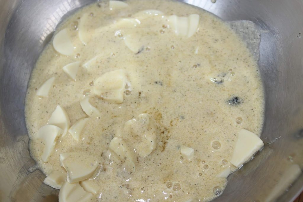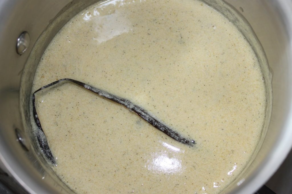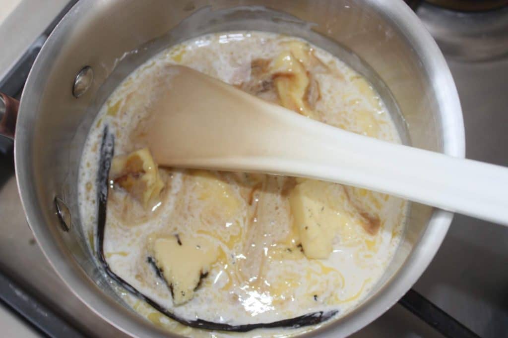 - Ajoutez l’extrait de vanille liquide et faites chauffer sur feu doux.