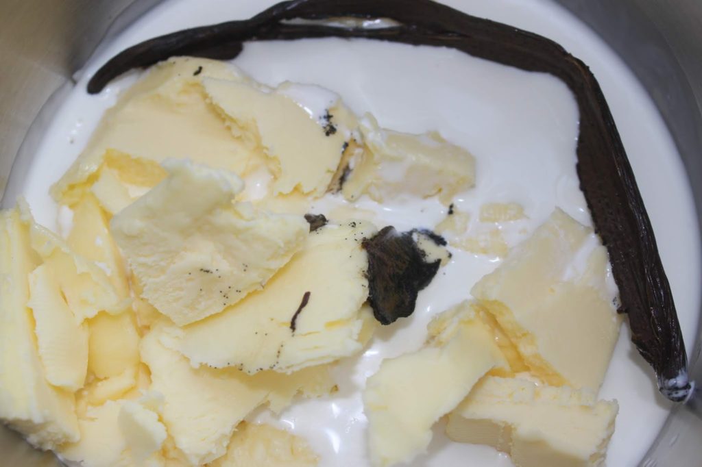 - Ouvrez la gousse de vanille en deux et récupérez la vanilline que vous mettrez avec le beurre.