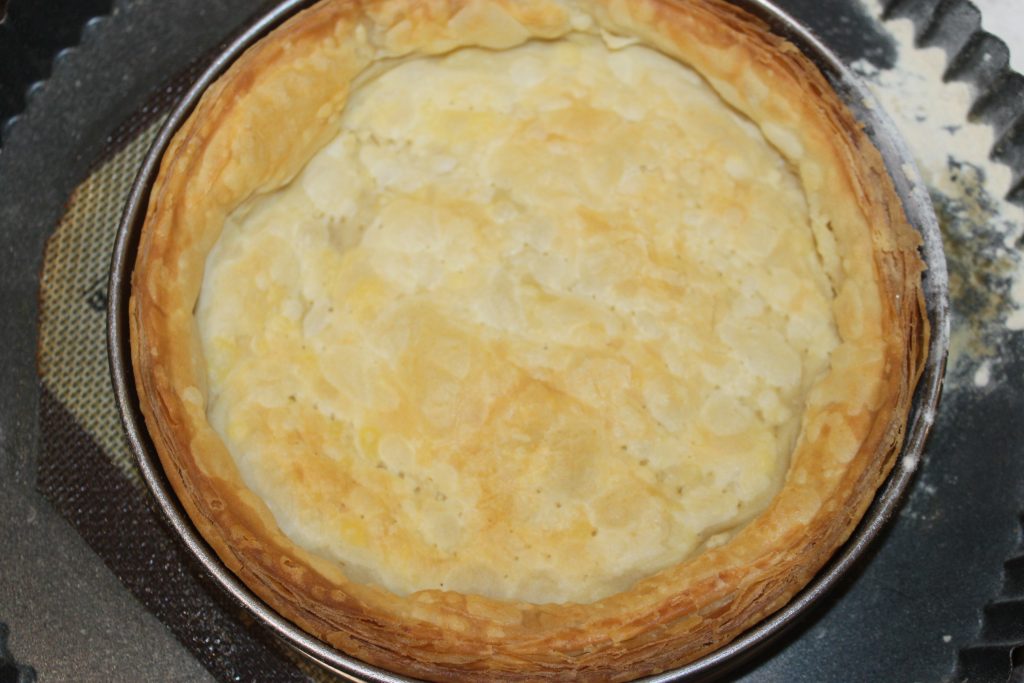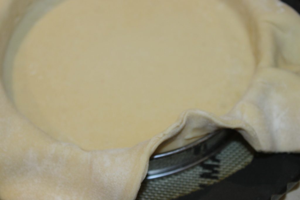 Placez-la dans le cercle à tarte ou le moule. Ici j’ai posé le cercle à tarte dans un plat plus grand pour avoir un fond. Mais vous pouvez poser le cercle sur une plaque à pâtisserie.