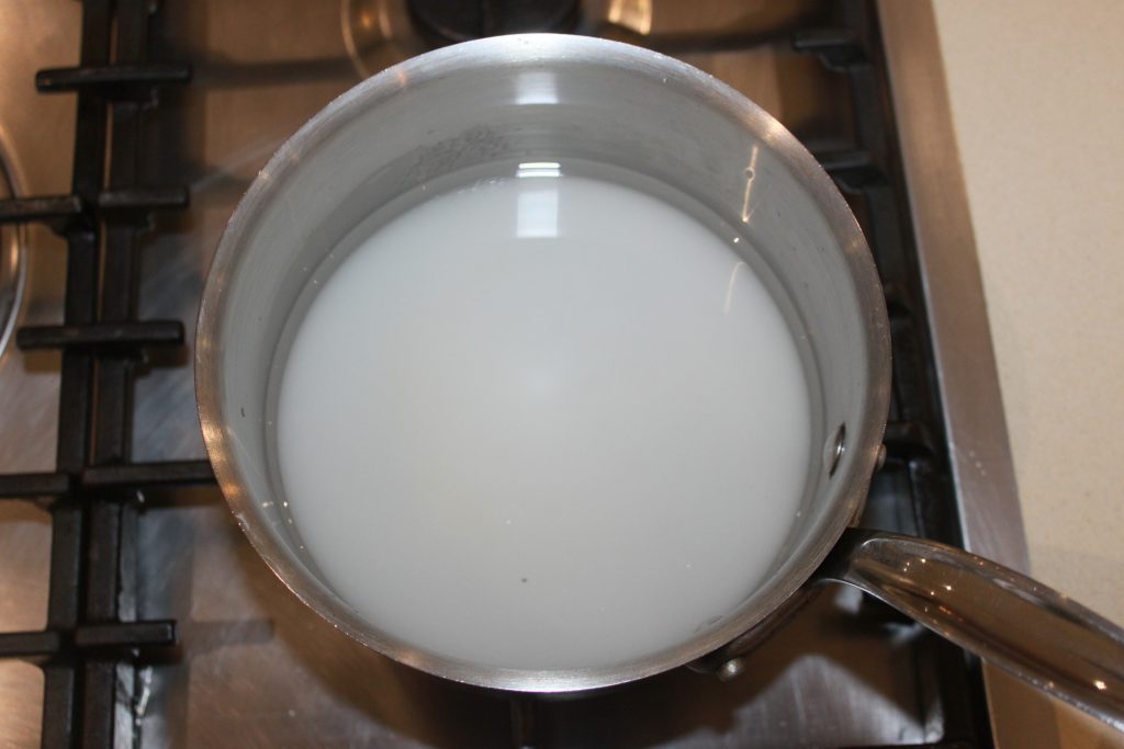 - Versez le sucre et l’eau dans une casserole et portez à ébullition.