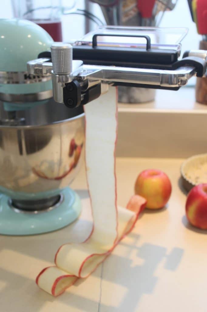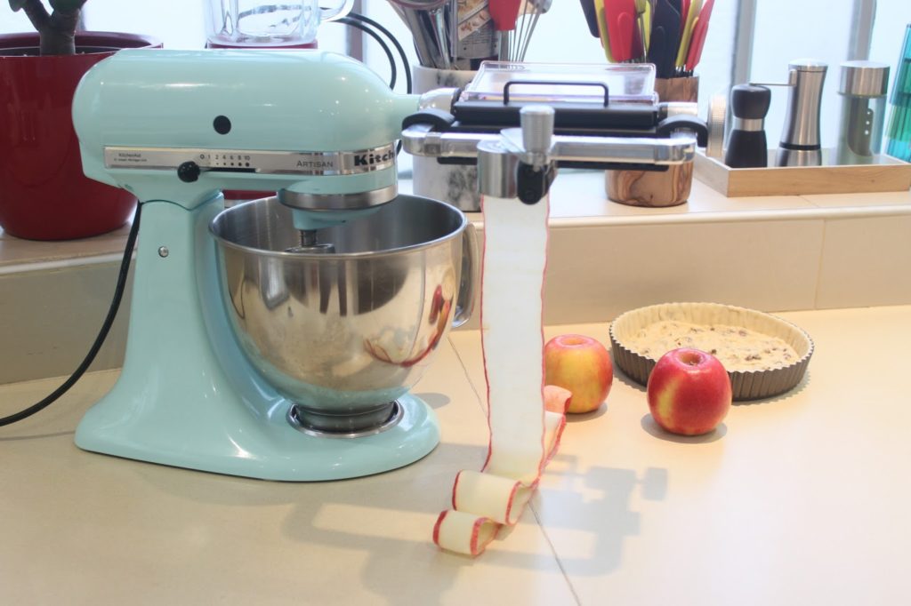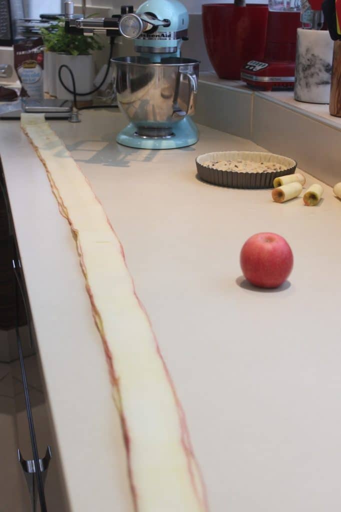 - Pour cette tarte, j’ai utilisé le coupe lanières de KitchenAid, un nouvel ustensile qui va faire des adeptes !!