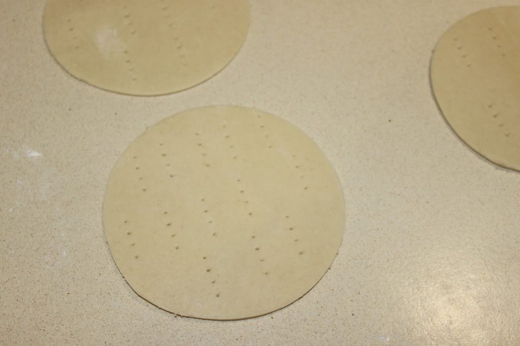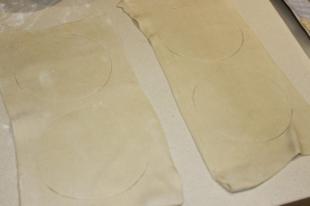 Coupez au couteau (en vous aidant d’un cercle à pâtisserie) des cercles de 12cm (car elle va se rétracter un peu).