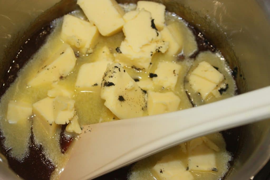 Quand tout le caramel est fait, ajoutez le beurre en une fois.