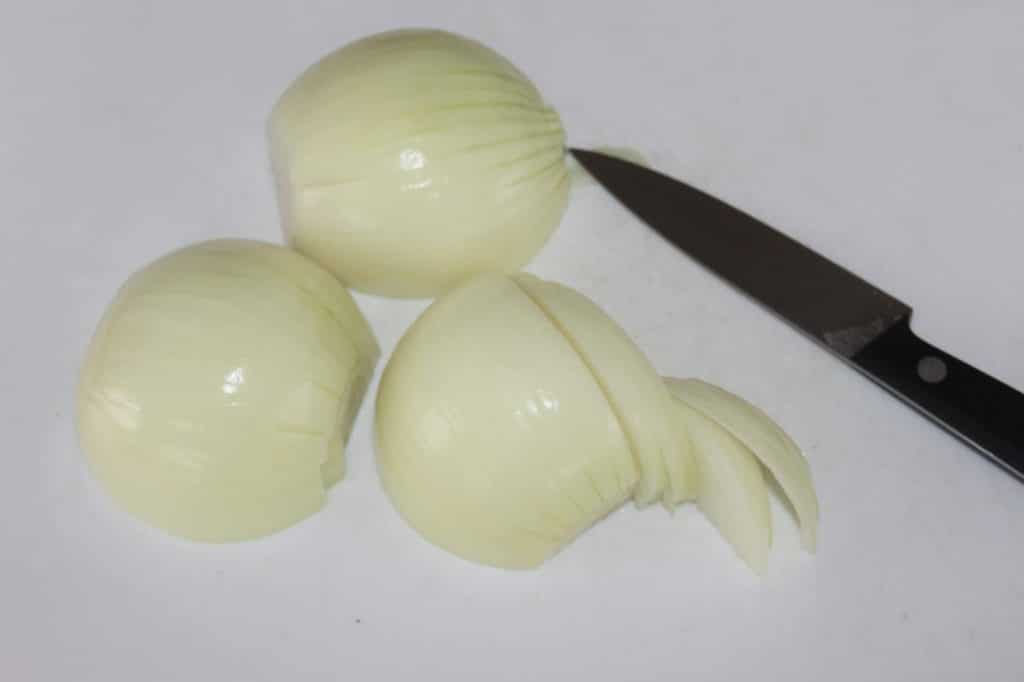 Cuando las cebollas se ablanden un poco, vierta el vino blanco. Dejar cocer durante 5 minutos y apagar el fuego.