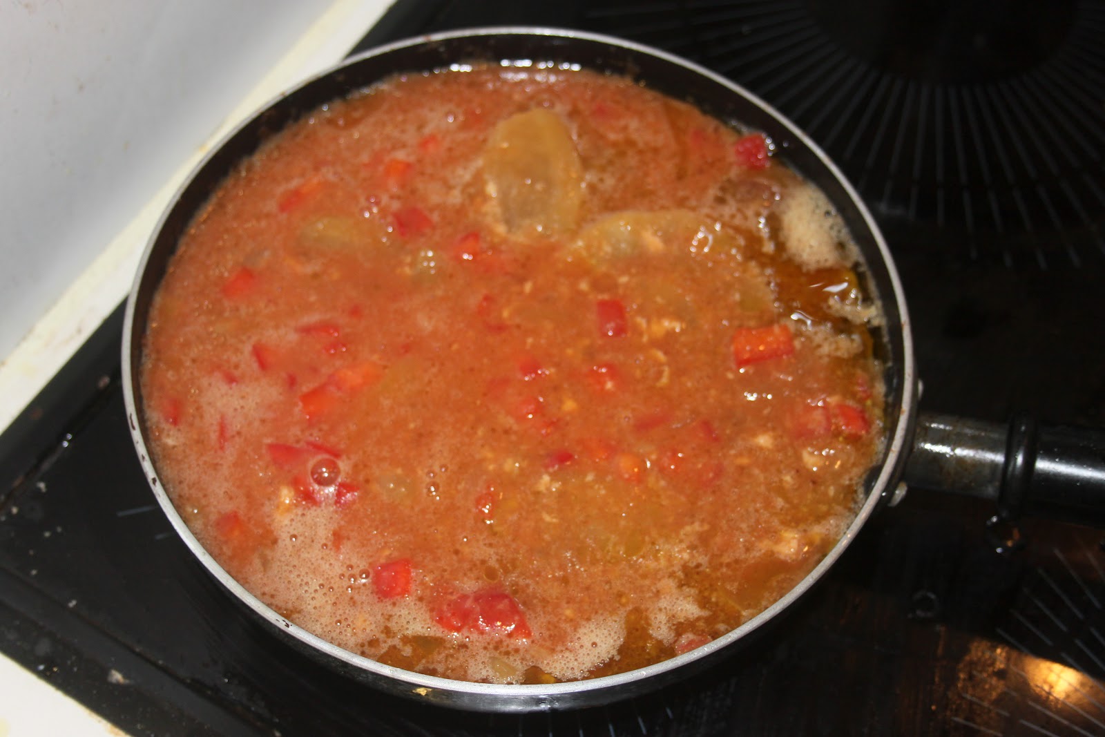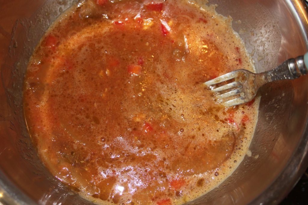 - Pendant ce temps, battre les oeufs avec le double concentré de tomates.