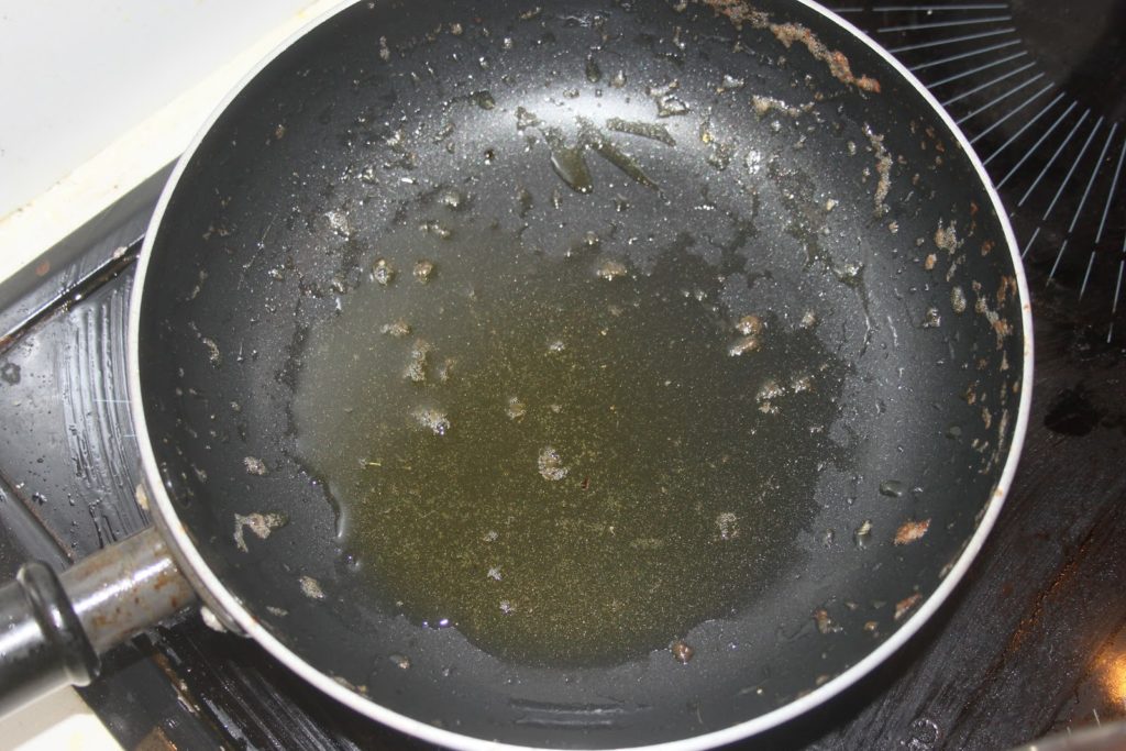 - Se débarrasser de l’huile de la poêle en en laissant l’équivalent de deux cuillerées à soupe.