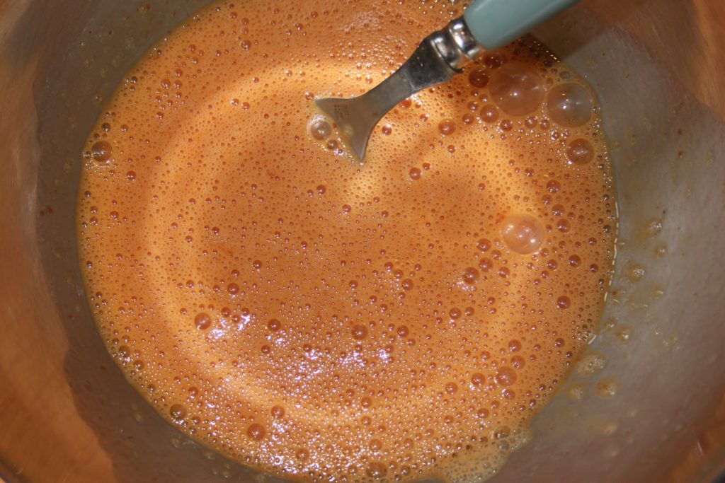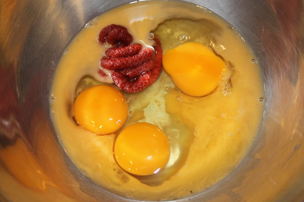 Pendant ce temps, battre les oeufs avec le double concentré de tomates.