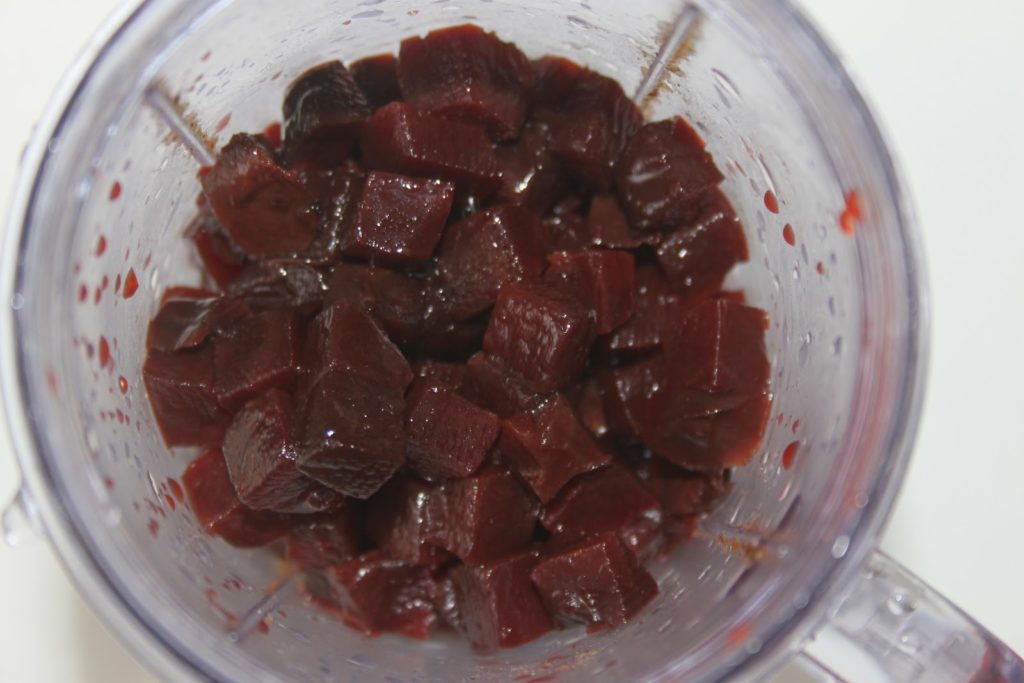 - Mixer les betteraves avec une cuillerée à soupe d’eau.