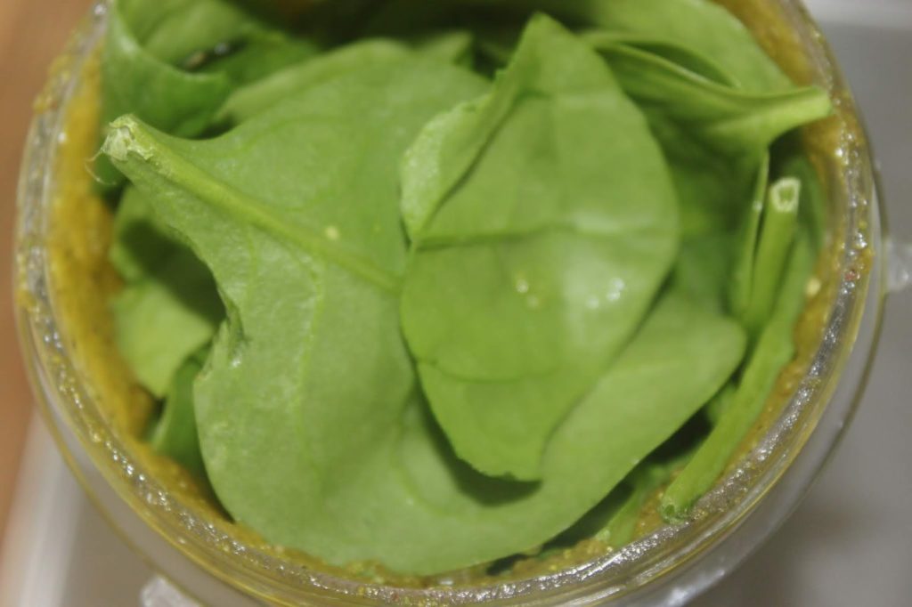 - Commencez par préparer le pesto épinard, pecorino pistache.