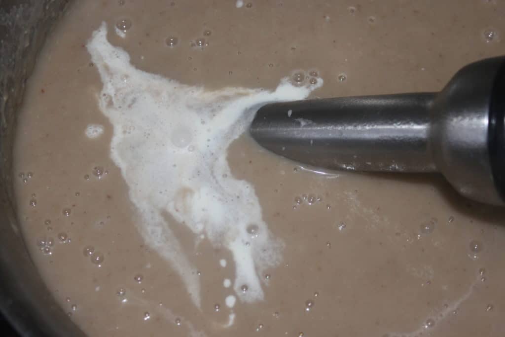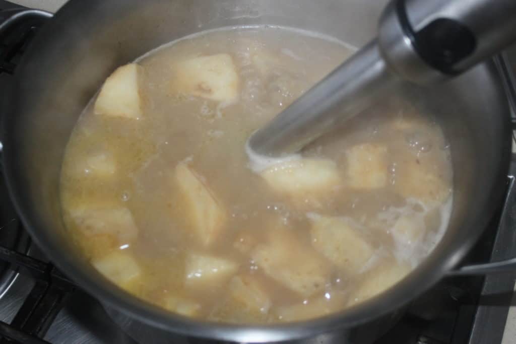 Dejar cocer otros 10 minutos. Triturar la mezcla con una batidora de mano.