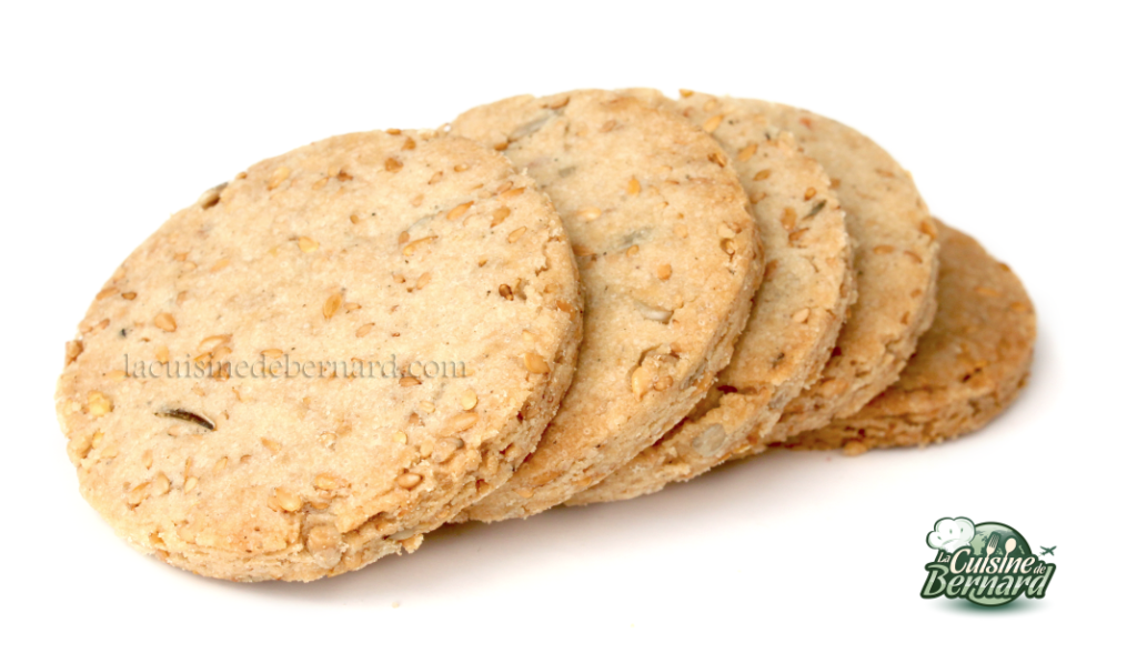 Voici une recette pour mes amis et lecteurs qui me demandent régulièrement de poster des douceurs sans gluten, sans œufs ou sans beurre… C’est un sacré challenge pour moi, car j’aime tout et je mange tout. Mais je voulais relever le défi de faire des sablés sans gluten et leur trouver une cohésion et un vrai croustillant. Je vous présente donc ma recette que j’ai mise au point après plusieurs essais et ces galettes sont sans gluten (farine de riz complet) sans œufs (comme des shortbreads finalement !) et sans beurre. J’ai fait les trois « sans » en une recette. Et le résultat ? Délicieux ! Ces biscuits sont bien craquants et croustillants, mais aussi très savoureux avec leurs graines et une touche de vanille. Même sans régime particulier, je sais déjà que je vais en refaire de temps en temps…