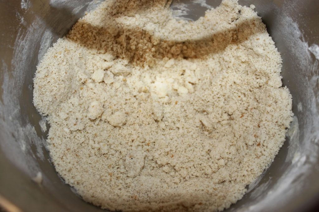 - Mélangez la farine de riz complet, le sucre complet de canne et le sucre glace.
