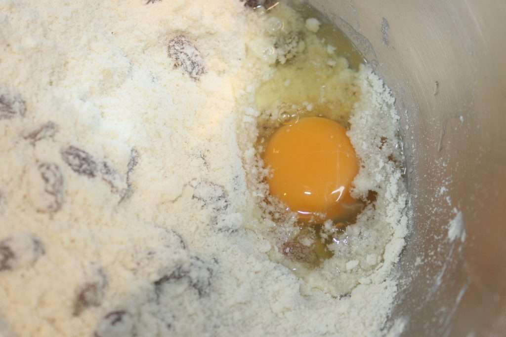 Mezclar un poco y luego verter los 50g de huevo y la leche.