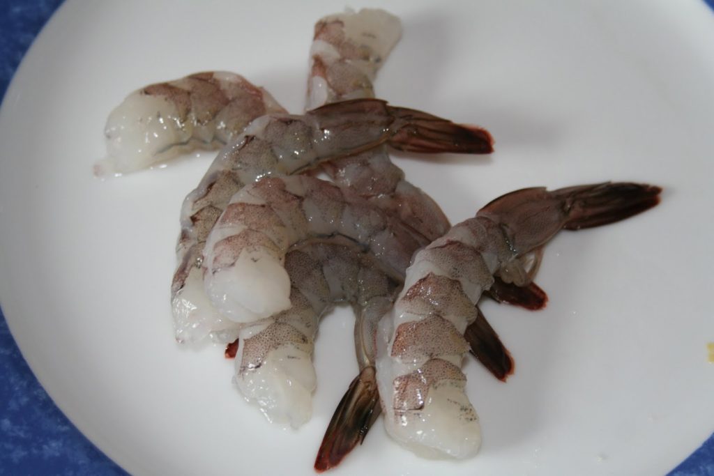 Pelar el cuerpo de las gambas. Sólo deja la cola.