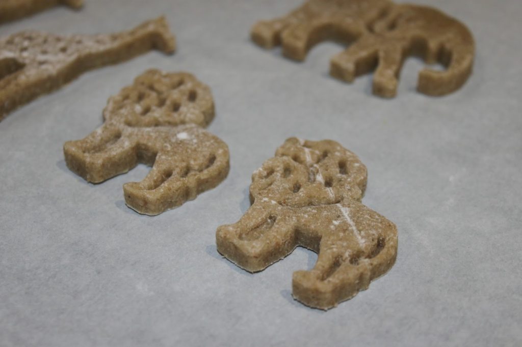 - Farinez légèrement dessus et dessous la pâte puis coupez avec des emporte-pièces. J’ai bien conscience que vous allez forcément me demander où j’ai trouvé ceux-la. Il faut dire qu’ils sont vraiment tops !! Je les ai trouvés aux États-Unis pour une quinzaine de dollars. Mais la recette fonctionne aussi bien avec n’importe quel emporte-pièce ! Ici le tigre.