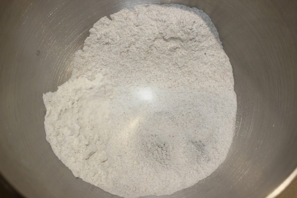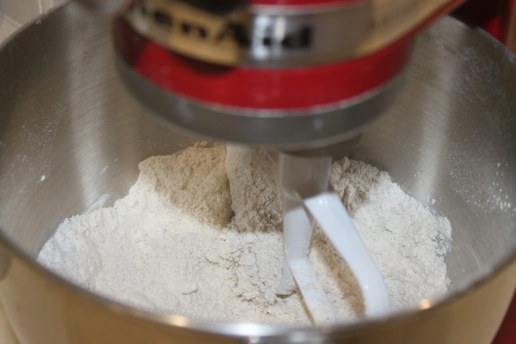 - Mettez la farine, la farine T110, la farine de seigle, le bicarbonate de sodium et le sel dans la cuve de votre KitchenAid ou dans un récipient.