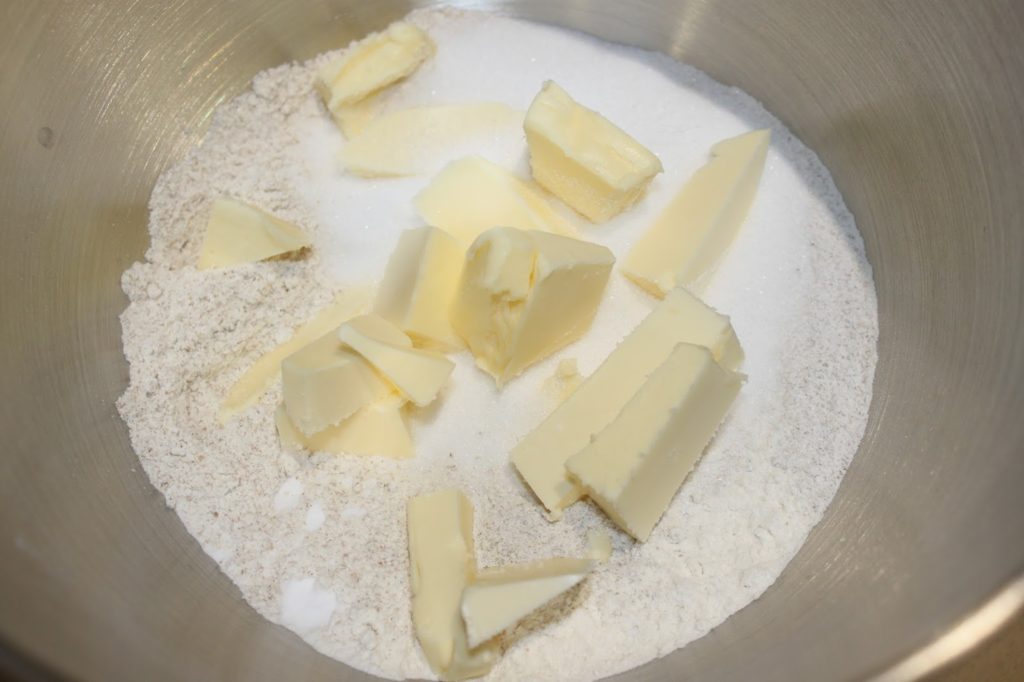 - Ajoutez le sucre et le beurre demi-sel coupé en morceaux.